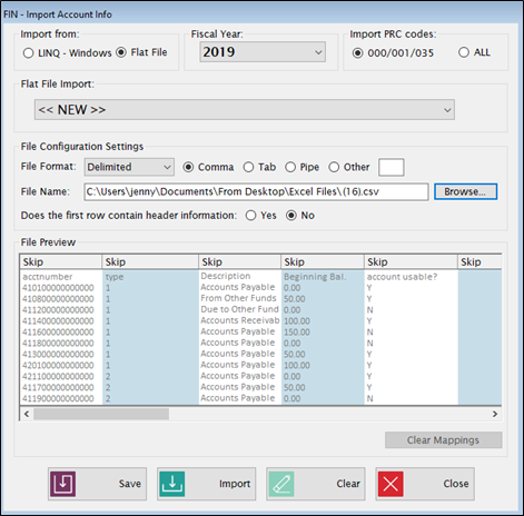 This may be used to import account data if a connection to the general ledger database is not available or for general ledger type Other.