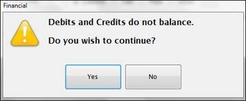 A warning message will display if Debits and Credits are not equal. You can still run the import, but Financial reports (Trial Balance and FC1A) will not be balanced.