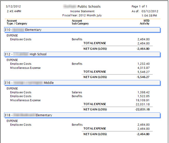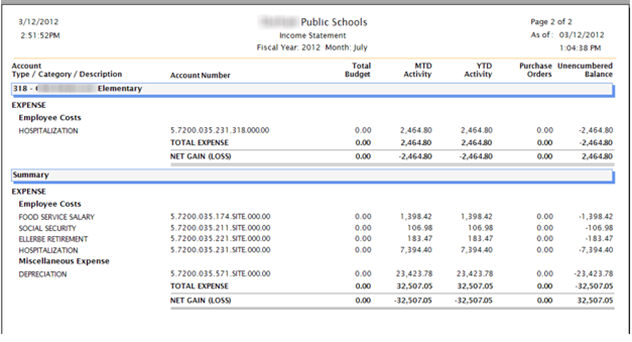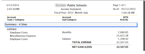 The Income Statement Report is a Financial Statement that reports whether the School or District is making or losing money.