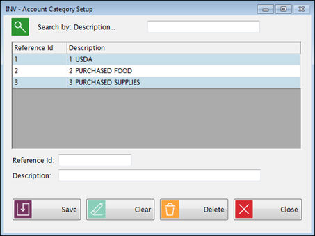 To add a new Account Category, enter a Reference ID (short description) and Description and then click Save.