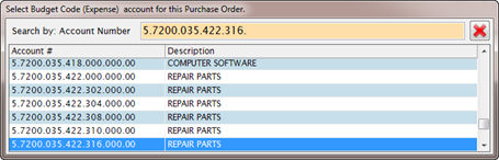 o It will show a list of available accounts. As you type an account number into the list it will automatically position to the closest match.