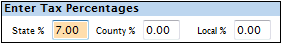 o To edit or verify the percentage entered here, highlight the Tax Cost field and hit Enter on the keyboard. The Enter Tax Percentages box will reappear.