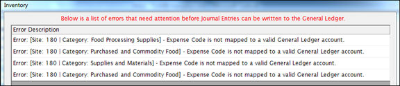 o Account mapping: All Sites and Categories must be mapped to general ledger accounts in Inventory Accounts.