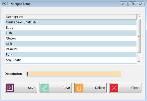 Enter a the allergen name/description in the Description text field.