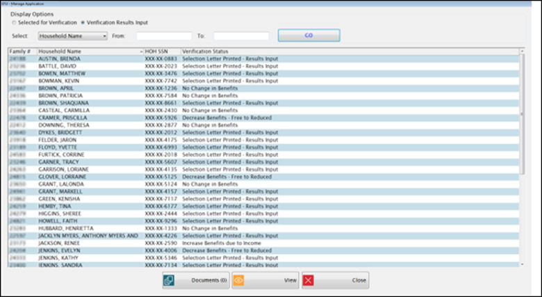 Verification Results Input showsapplications where Selection Letters have been printed. These applications cannot be removed from Verification.
